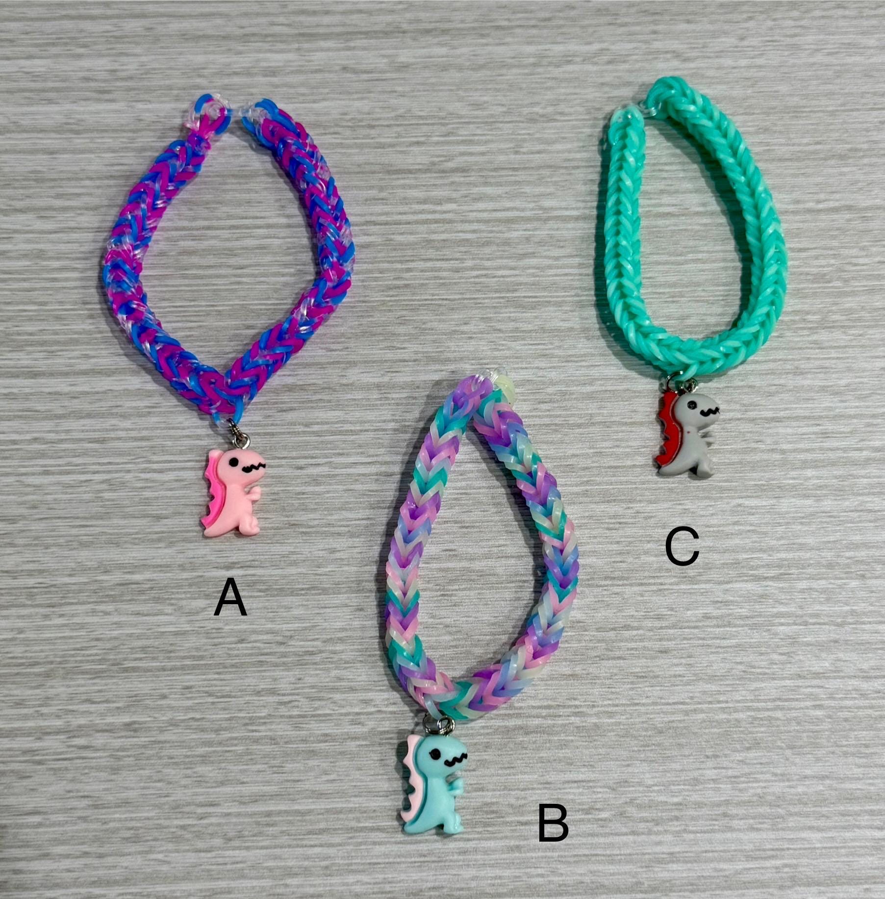 Made from durable rubber bands that are prestretched for strength, each woven fishtail bracelet includes a resin dinosaur charm attached with a secure metal clasp connector. This ensures the charm stays in place during everyday wear. The multicolored kids bracelet showcases coordinated color patterns that vary slightly, making each piece truly one-of-a-kind. Handmade in the USA by Bauble Time Trinkets, this stackable friendship band offers quality craftsmanship backed by positive customer feedback praising its durability and fun design.